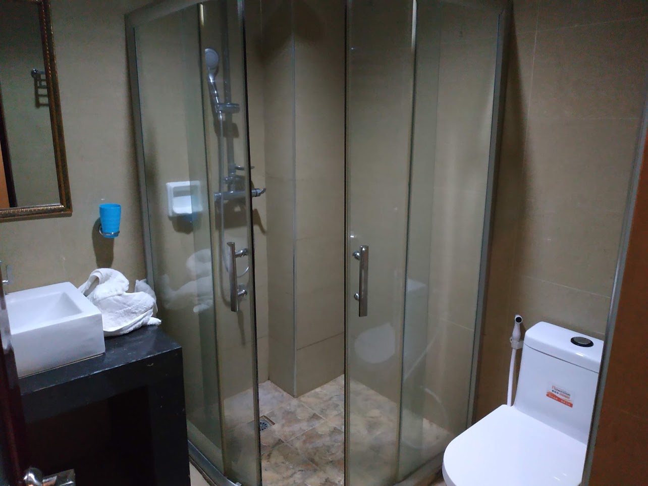 화장실은 넓은 편이었습니다. 깨끗하기도 했고 샤워도 문제없었습니다.