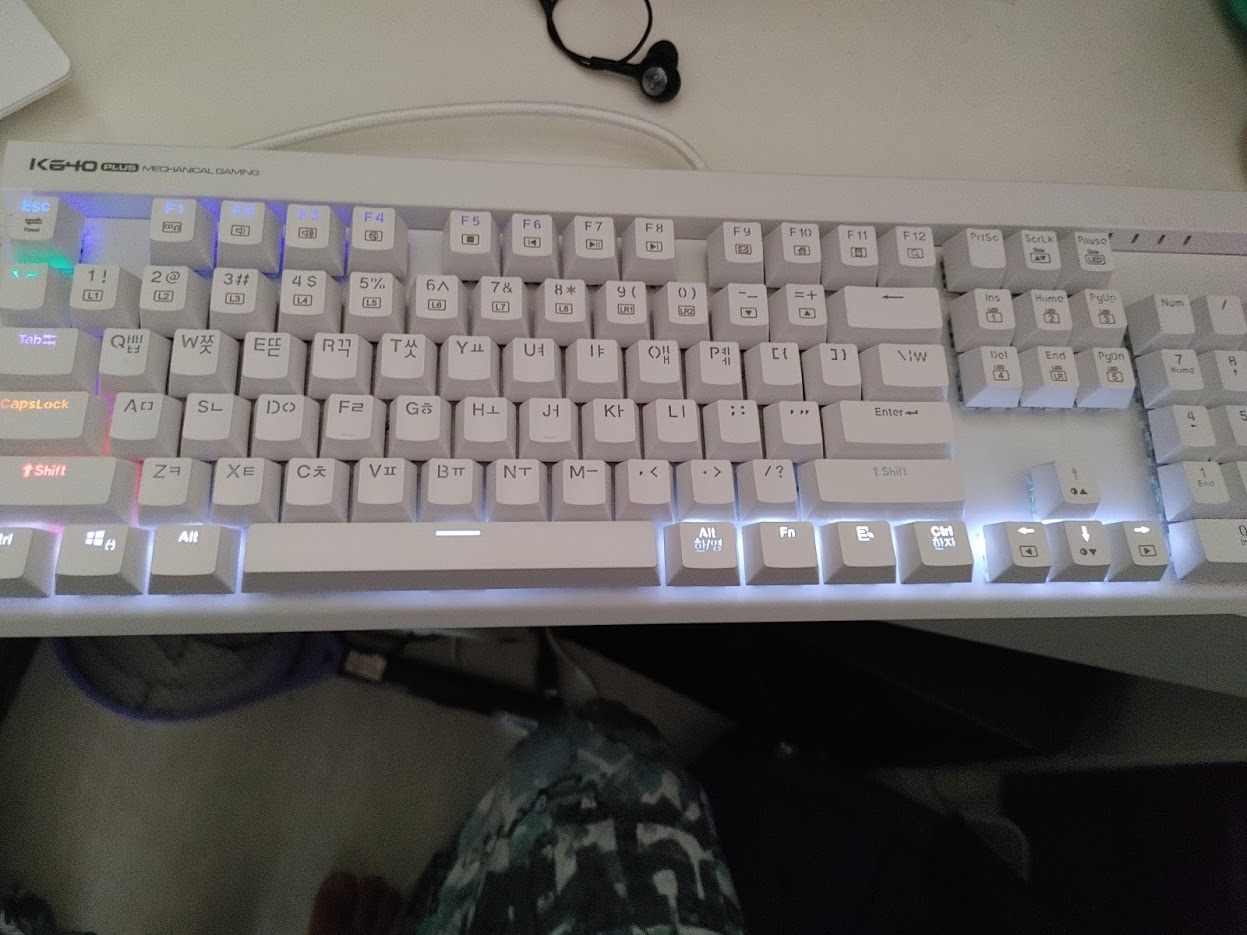 이 키보드의 가장 멋있는 부분이라고 해야하나 장점은 ㅋㅋ 컴퓨터 전원 켜고 위에서부터 아래로 불빛이 켜지는데 ㅋㅋ 매우 ㅋㅋ 다이내믹하고 처음 보면 올! 이런 느낌이 듭니다.