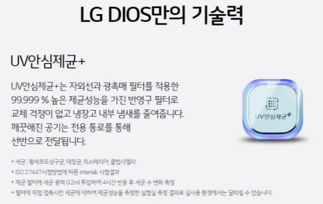 이 냉장고의 특징 중 하나는 UV 살균 제균 기능이 있습니다.