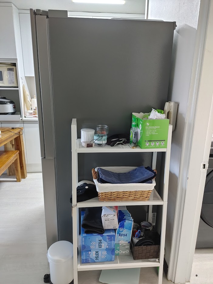 냉장고 하나 바꿨는데 ㅋㅋㅋ 스테인리스 문짝 때문인지 집안이 세련돼 보입니다.