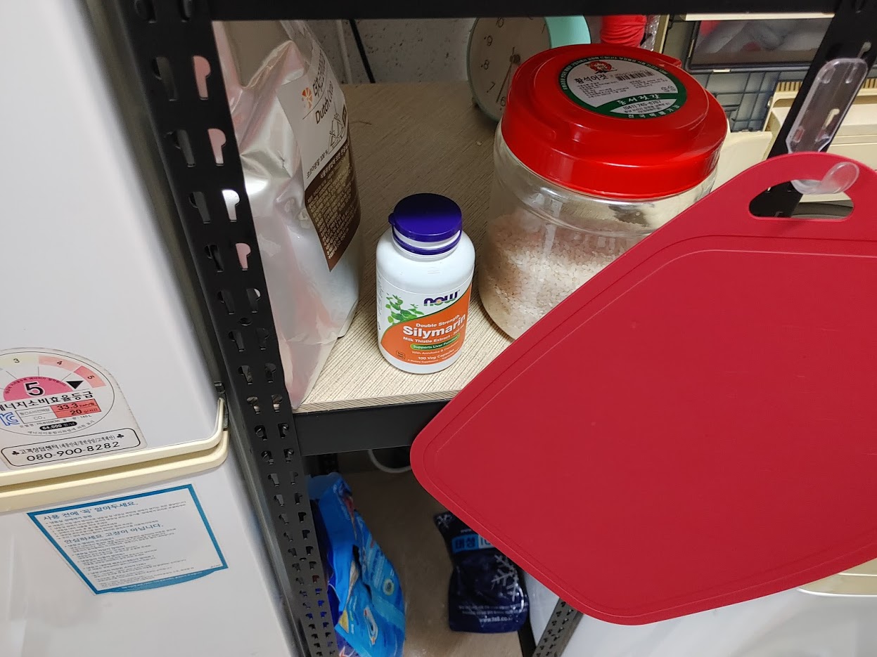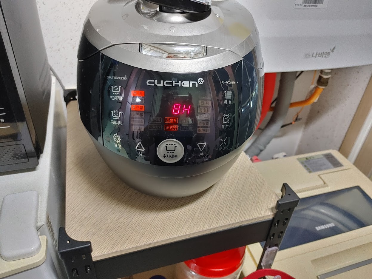 겨우겨우 공간을 만들어서 ㅎㅎ 쌀, 세탁세제, 각종 양념, 전기밥솥까지....