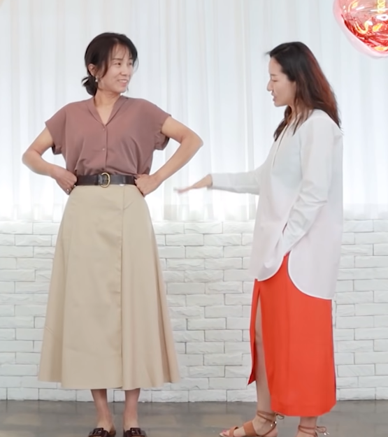 뻣뻣한 소재의 옷도 이뻐 보이네요^^ 저는 뉴트럴 한 치마 색깔 너무 좋네요.