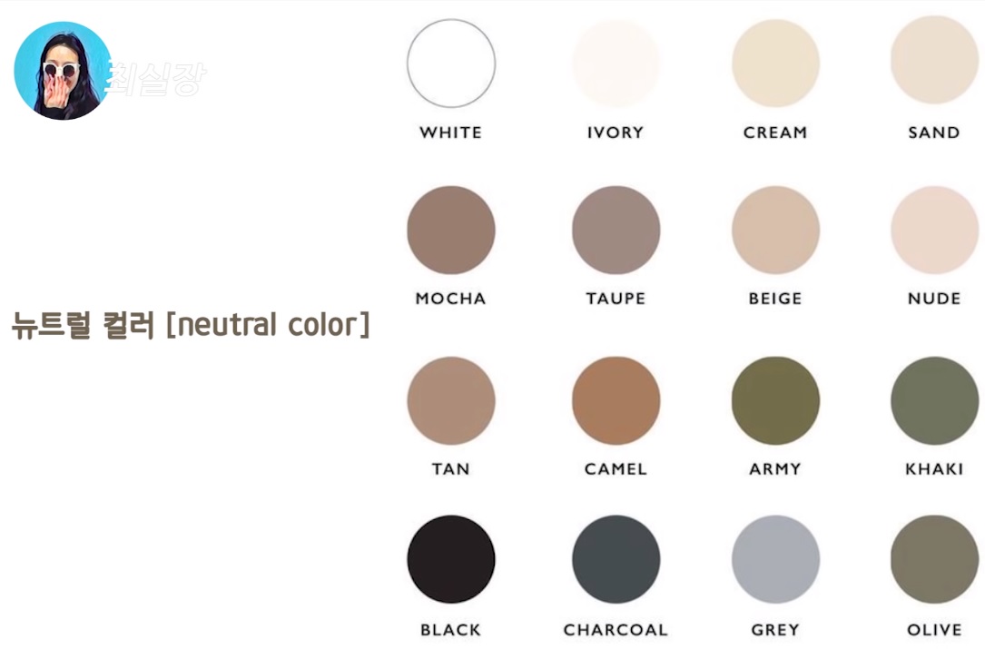 뉴트럴 컬러 색상의 의상을 조합하면 거의 실패가 없습니다.(화이트, 아이보리, 모카, 그레이, 카멜, 블랙 등)