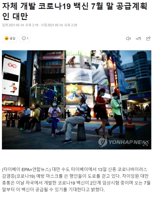 그러나 대만 정부가 말하는 국산 백신은 현재 2상이 진행 중입니다. 시간적으로 7월까지 3상을 끝내기에는 시간이 매우 부족합니다.