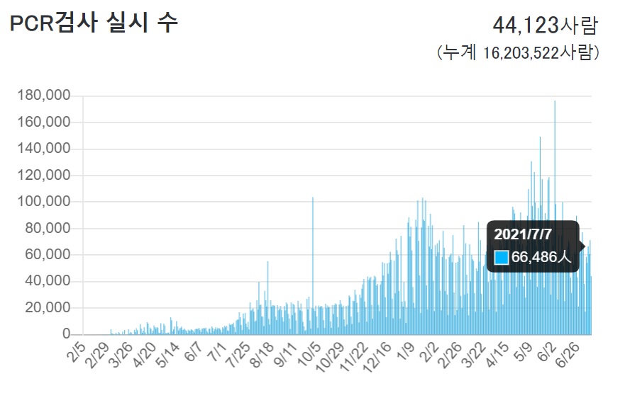 7월 7일 66,486명, 7월 10일 44,123명, 7월 12일 64,222명을 검사했습니다.