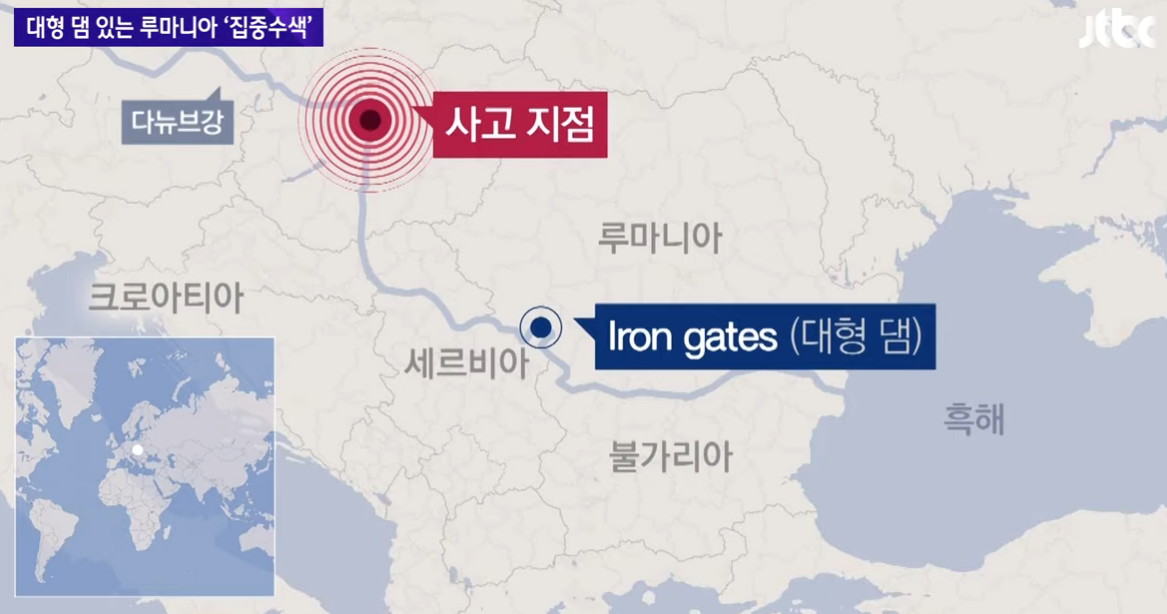 이당시 인접국인 루마니아가 댐수문을 닫고 적극적 수색을 했습니다.