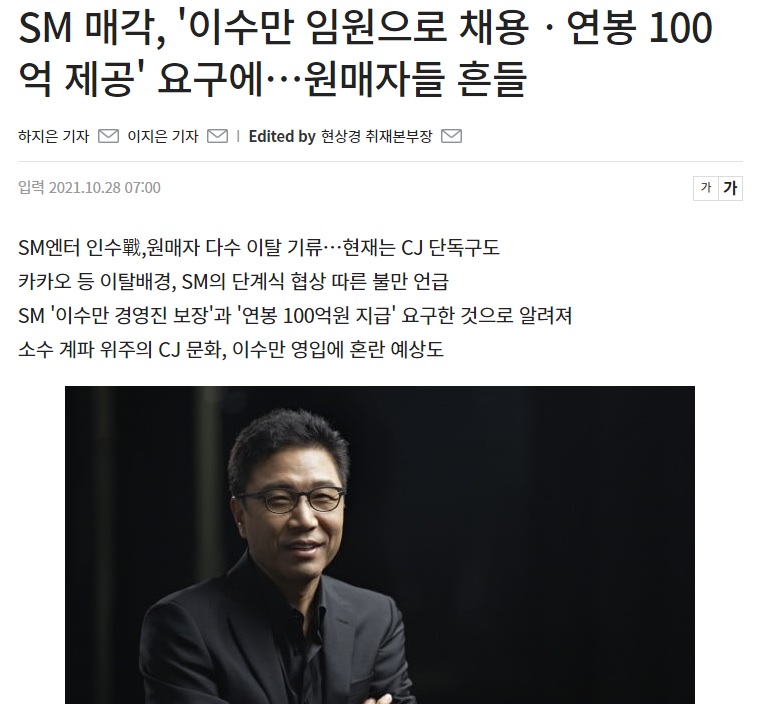 CJ가 필요한 것도 SM 소속 가수들이지 SM의 경영 노하우나 이수만 CEO는 필요하지 않을 것입니다.