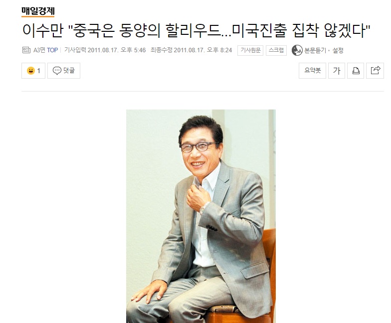 그리고 이수만은 동양의 할리우드는 '중국'이라고 말한 적도 있습니다.
