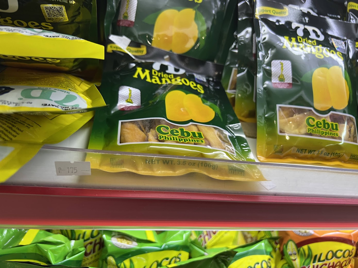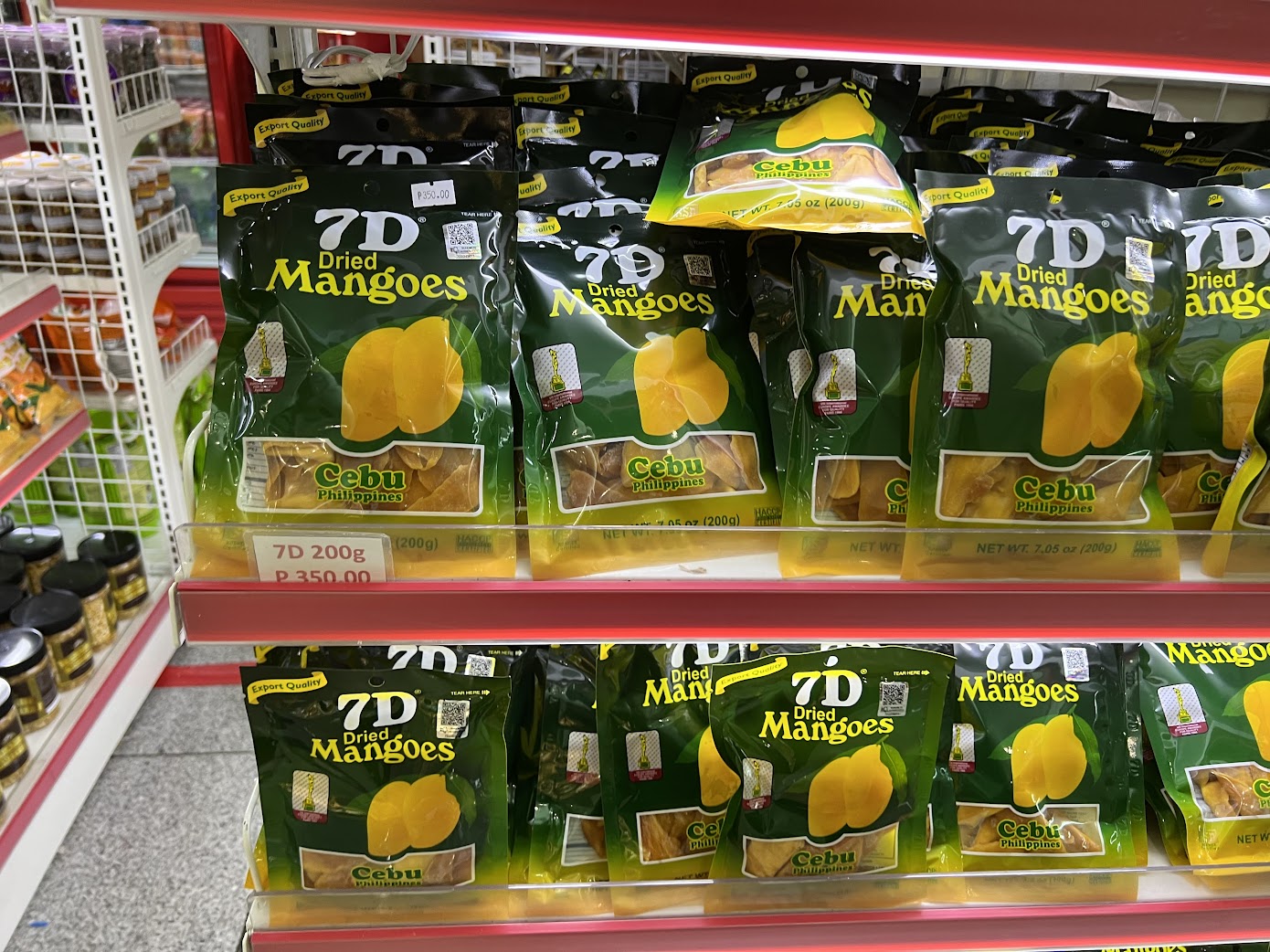 7D망고 100G이 175페소 (4100원), 7D망고 200G이 350페소 (8200원)입니다.